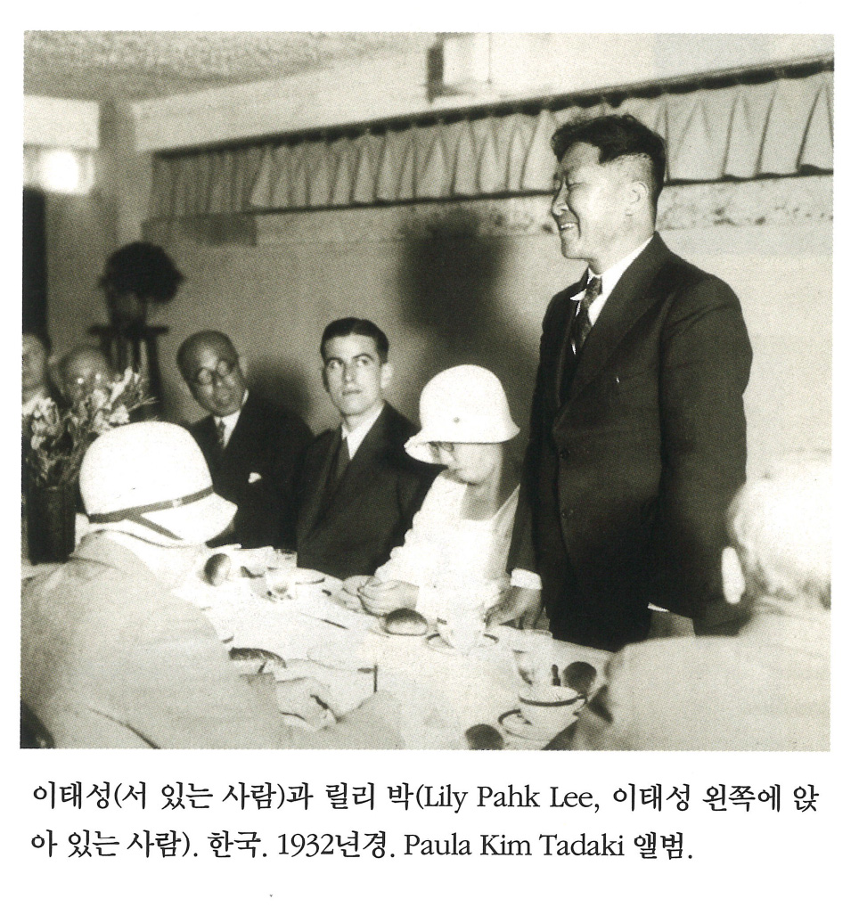 | j-f1igNLQ3q4qd2M-Gkvmw | 사진 | 이태성(서 있는 사람)과 릴리 박(Lily Pahk Lee, 이태성 왼쪽에 앉아 있는 사람). 한국. 1932년경. Paula Kim Tadak | 이태성, 릴리 박 (Lily Pahk Lee) | NULL |