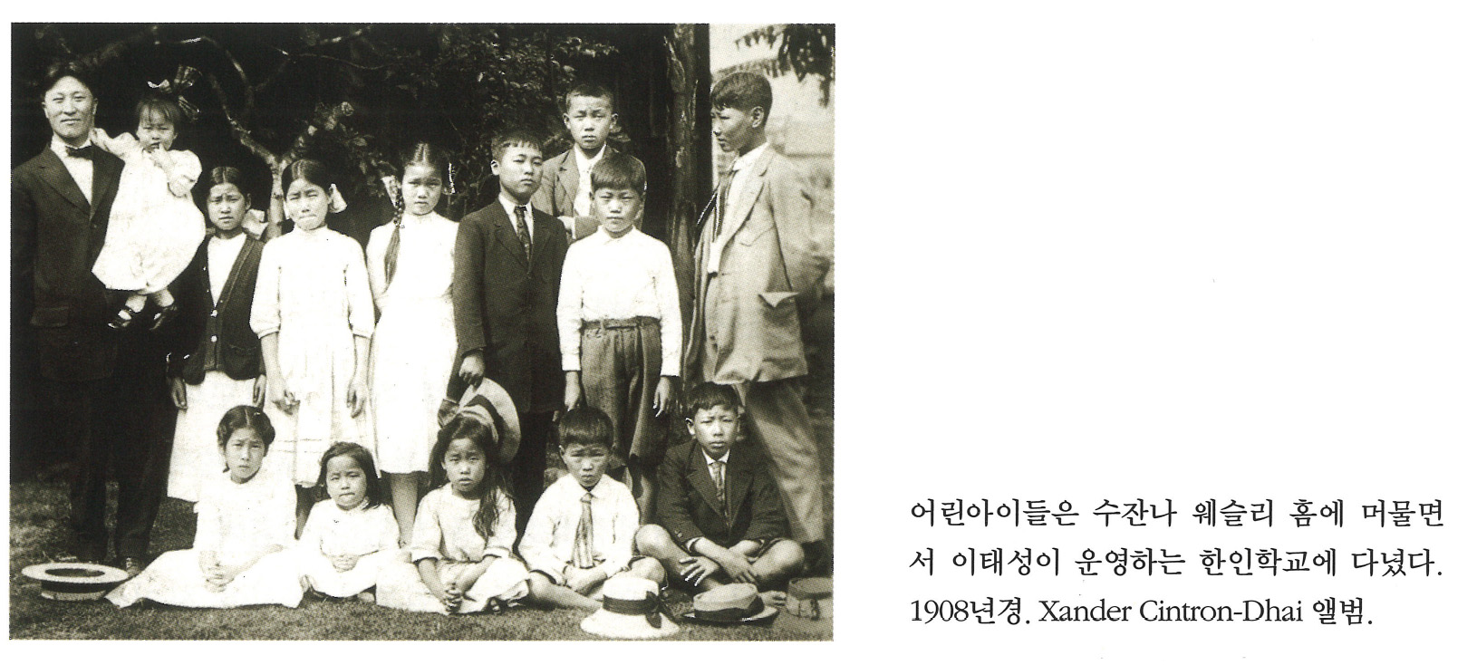 | BMyXb5QzRkq5E3HU7.jZKg | 사진 | 어린아이들은 수잔나 웨슬리 홈에 머물면서 이태성이 운영하는 한인학교에 다녔다. 1908년경. Xander Cintron-Dhai 앨범. | 수잔나 웨슬리, 이태성, Xander Cintron-Dhai | NULL |