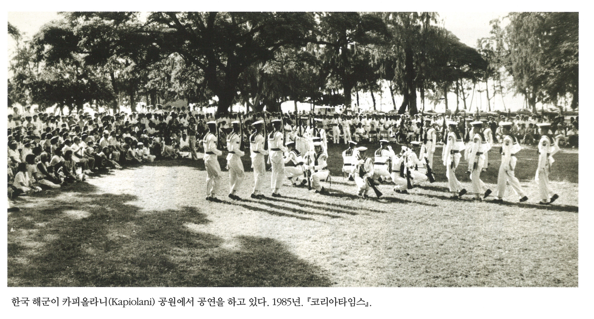 | yGZed3DcQYqQIbigelg66w | 사진 | 한국 해군이 카피올라니(Kapiolani) 공원에서 공연을 하고 있다. 1985년. 『코리아타임스』. | 카피올라니, 코리아타임스 | NULL |