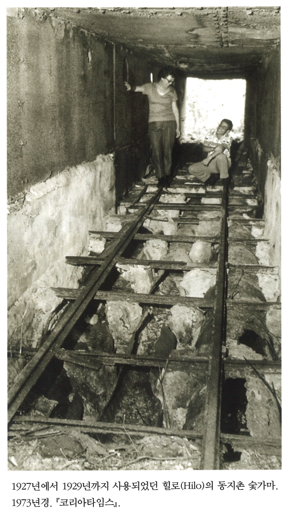 | yAN0ElkxR0y4LcumA0n7uQ | 사진 | 1927년에서 1929년까지 사용되었던 힐로(Hilo)의 동지촌 숯가마. 1973년경. 『 코리아타임스』. | 힐로(Hilo) | NULL |
