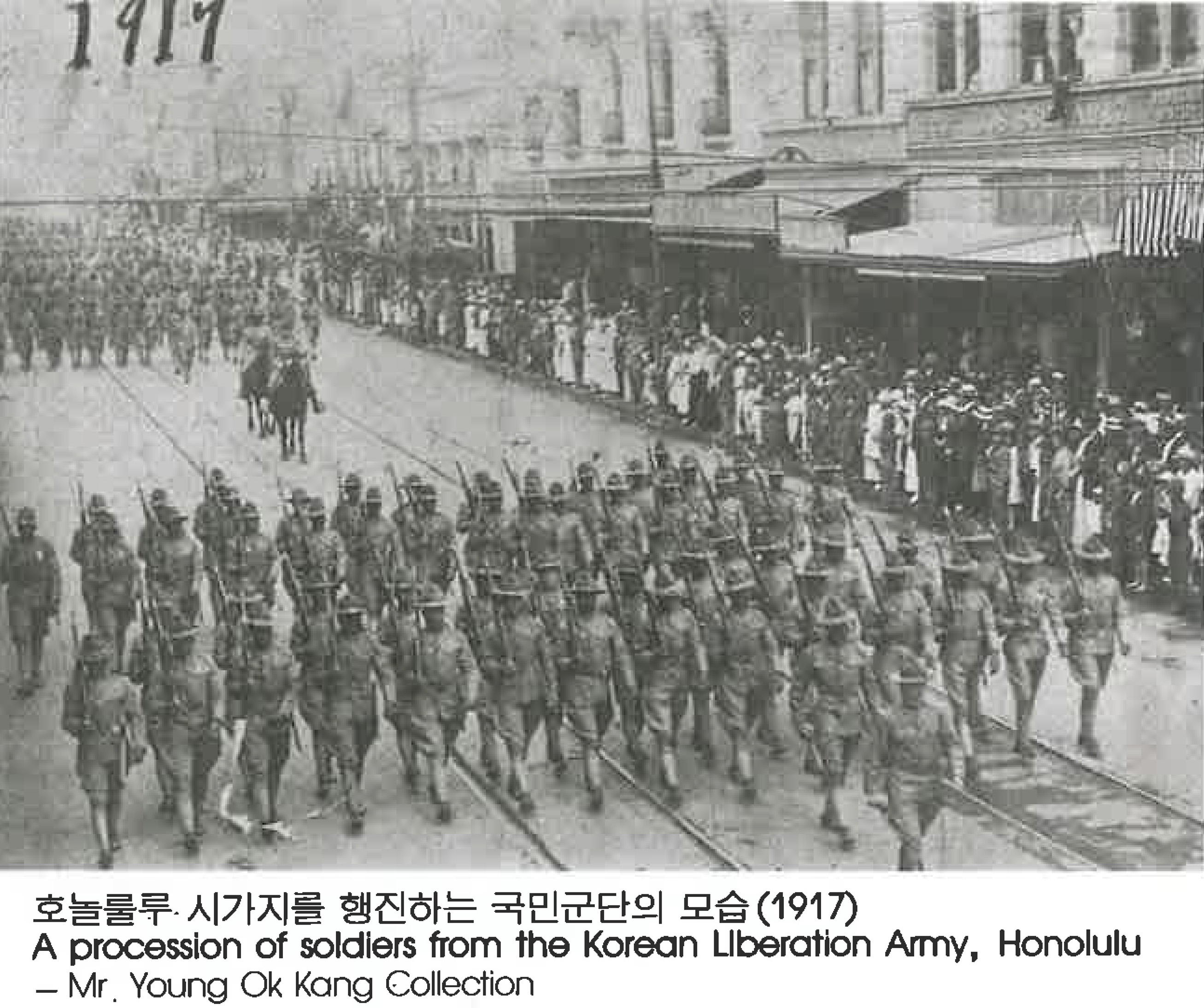 | Uhye92gjTgaFWAP9eqzlaw | NULL | 호놀룰루 시가지를 행진하는 국민군단의 모습 (1917) A procession of soldiers from the Korean Liberati | 호놀룰루 시가지를 행진하는 국민군단의 모습 (1917) | NULL |