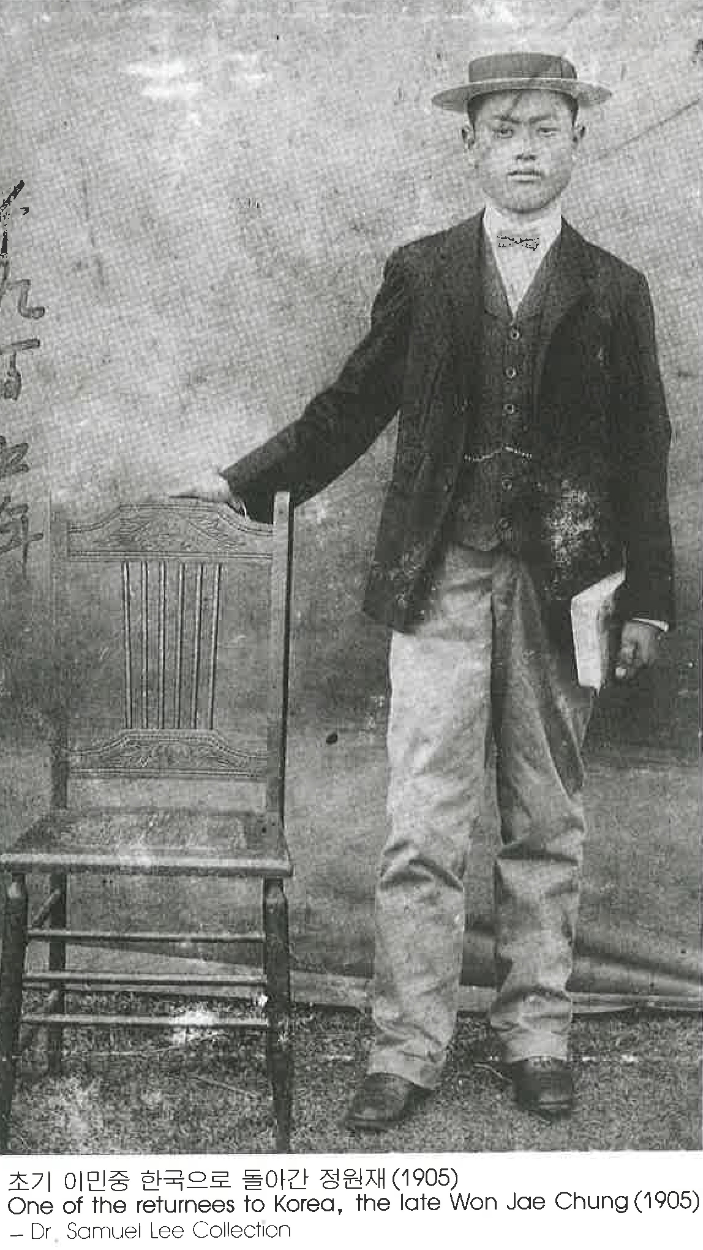 | C5dMDCvjR7-JZ0sC5unU4Q | 사진 | 초기 이민중 한국으로 돌아간 정원재 (1905) One of the returnees to Korea, the late Won Jae Chung | 정원재 | NULL |