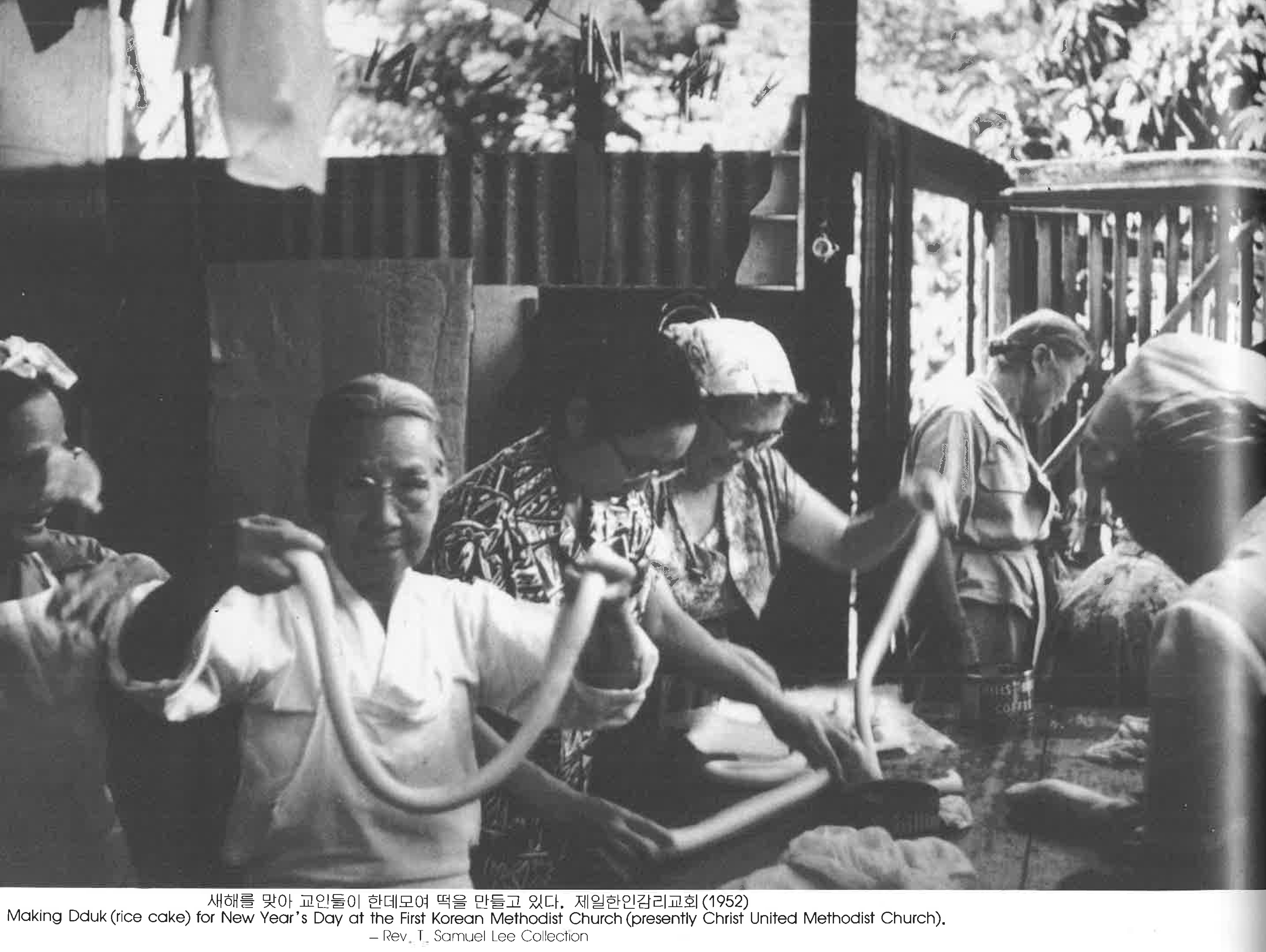 | EDps.Wd5QQynOWBmSSzL5g | NULL | 새해를 맞아 교인들이 한데모여 떡을 만들고 있다. 제일한인감리교회 (1952) Making Dduk (rice cake) for New Year | 제일한인감리교회 | NULL |