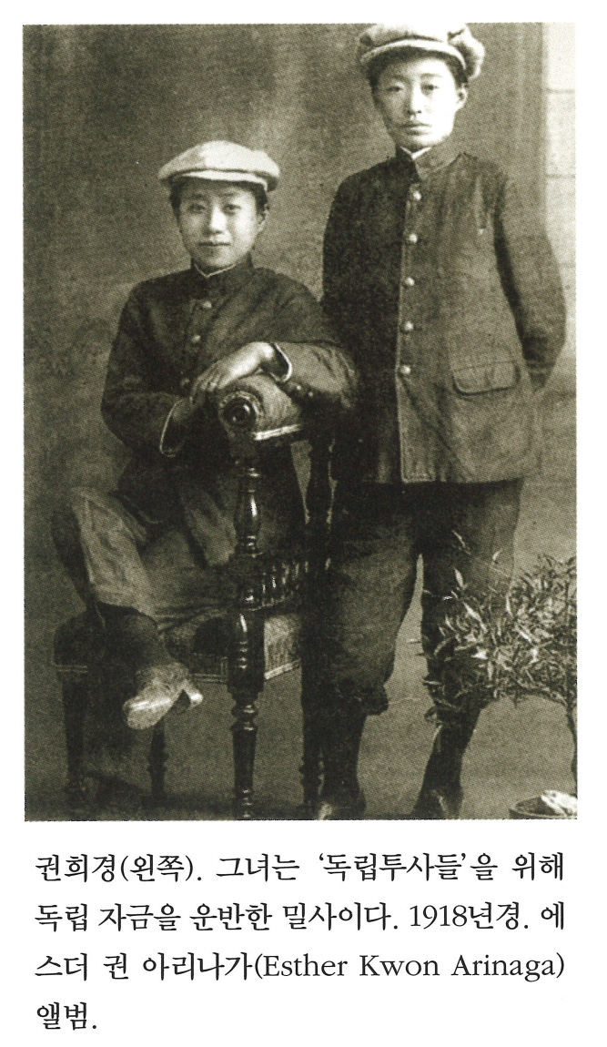 | ZEhpv6ZfSzeO8QEDEKYdRQ | 사진 | 권희경(왼쪽). 그녀는 '독립투사들'을 위해 독립 자금을 운반한 밀사이다. 1918년경. 에스더 권 아리나가(Esther Kwon Arinaga | 권희경, 에스더 권 아리나가 | NULL |
