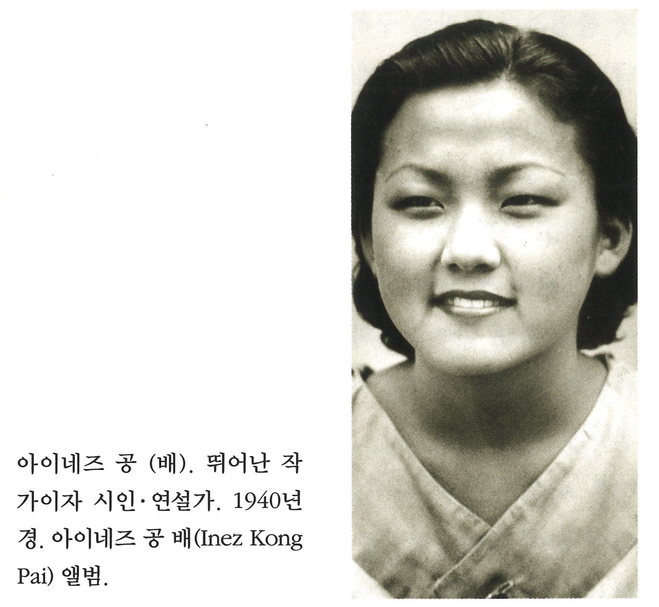 | ZJx2p5UKSoyw.CehQDyeGA | 사진 | 아이네즈 공 (배). 뛰어난 작가이자 시인·연설가. 1940년경. 아이네즈 공 배(Inez Kong Pai) 앨범. | 아이네즈 공 배 | NULL |
