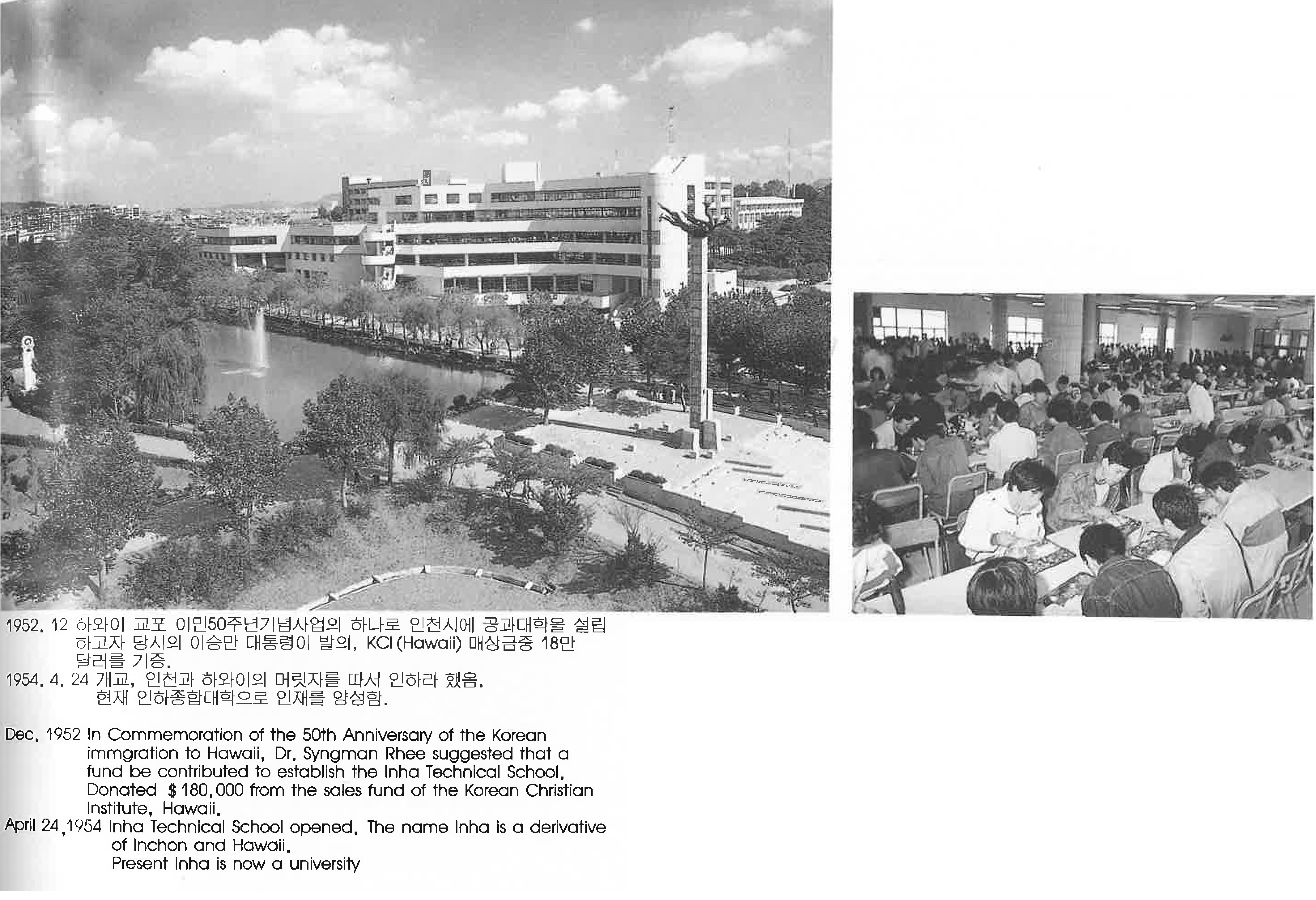 | zmzjw9yYTZSOuQX8XEYAhQ | NULL | 1952. 12 하와이 교포 이50주년기념사업의 하나로 인천시에 공과대학을 설립 하고자 당시의 이승만 대통령이 발의,KCI(Hawaii) 매상금 | 이승만, Dr. Syngman Rhee | NULL |