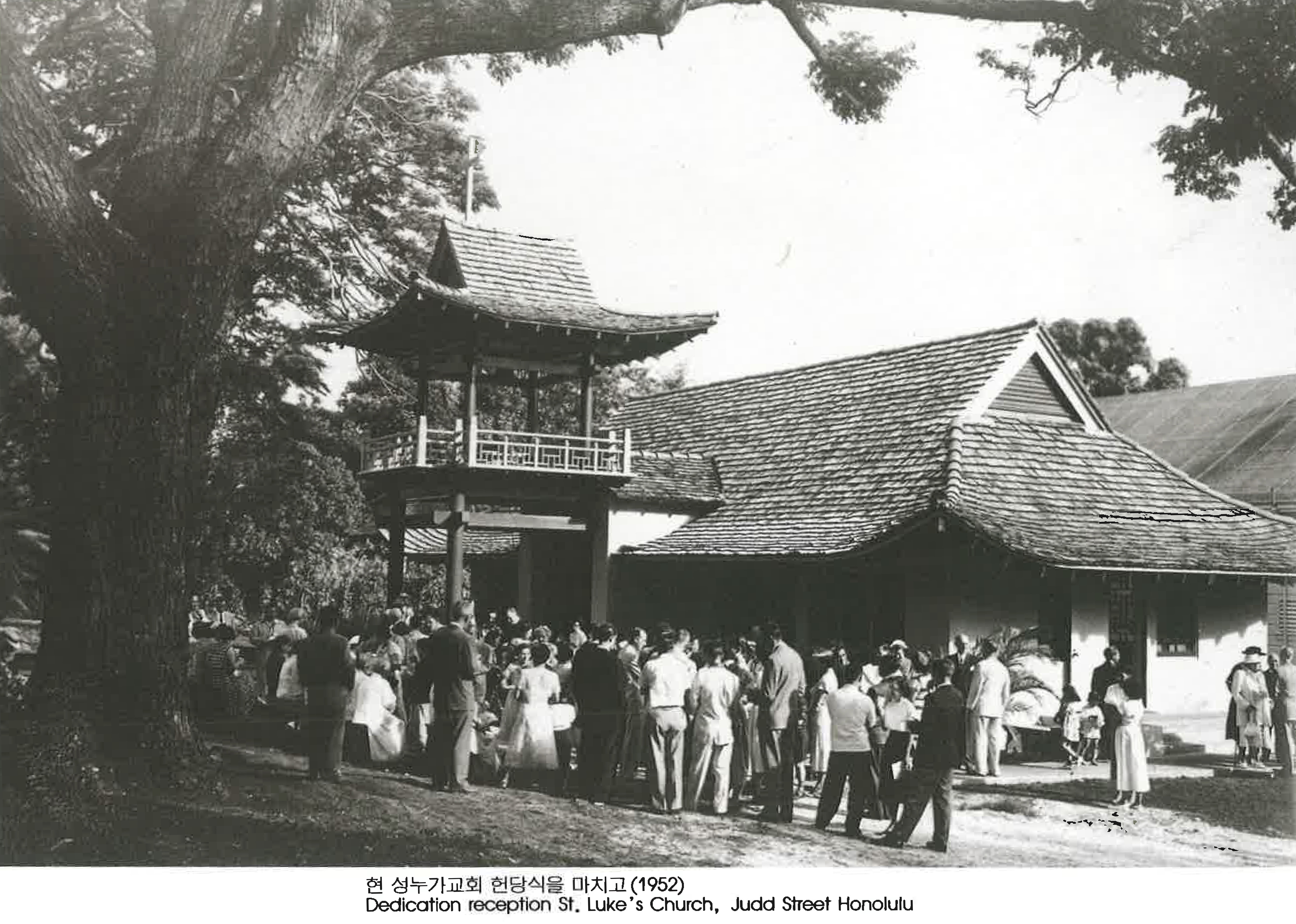 | ZU5Rr2QvSG2d.pDTECeEvQ | NULL | 현 성누가교회 헌당식을 마치고(1952) Dedication reception St. Luke’s Church,Judd Street Honolu | 성누가교회 | NULL |