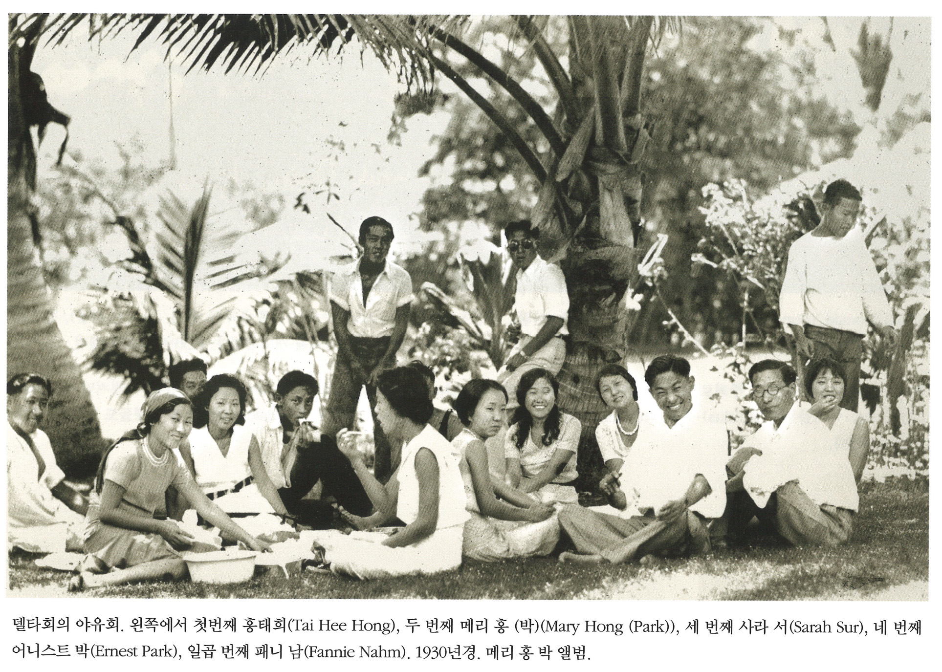| ZMclfc97QaOr3Ai-zH2-ZQ | 사진 | 델타의 야유회. 왼쪽에서 첫번째 홍태희(Tai Hee Hong), 두 번째 메리 홍(박)(Mary Hong(Pak)), 세 번째 사라 서(Sar | 1. 홍태희(Tai Hee Hong) 2. 메리 홍(박)(Mary Hong(Pak)) 3. 사라 서(Sarah Sur) 4. 어니스트 박(Ern | NULL |