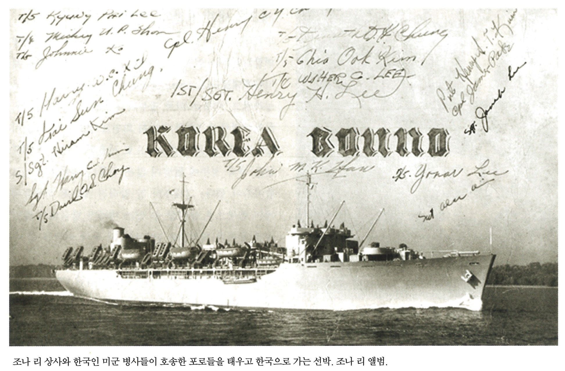 | ztigOAaBQgCyNyS0psG8Xg | 사진 | 조나 리 상사와 한국인 미군 병사들이 호송한 포로들을 태우고 한국으로 가는 선박. 조나 리 앨범. | 조나 리 | NULL |