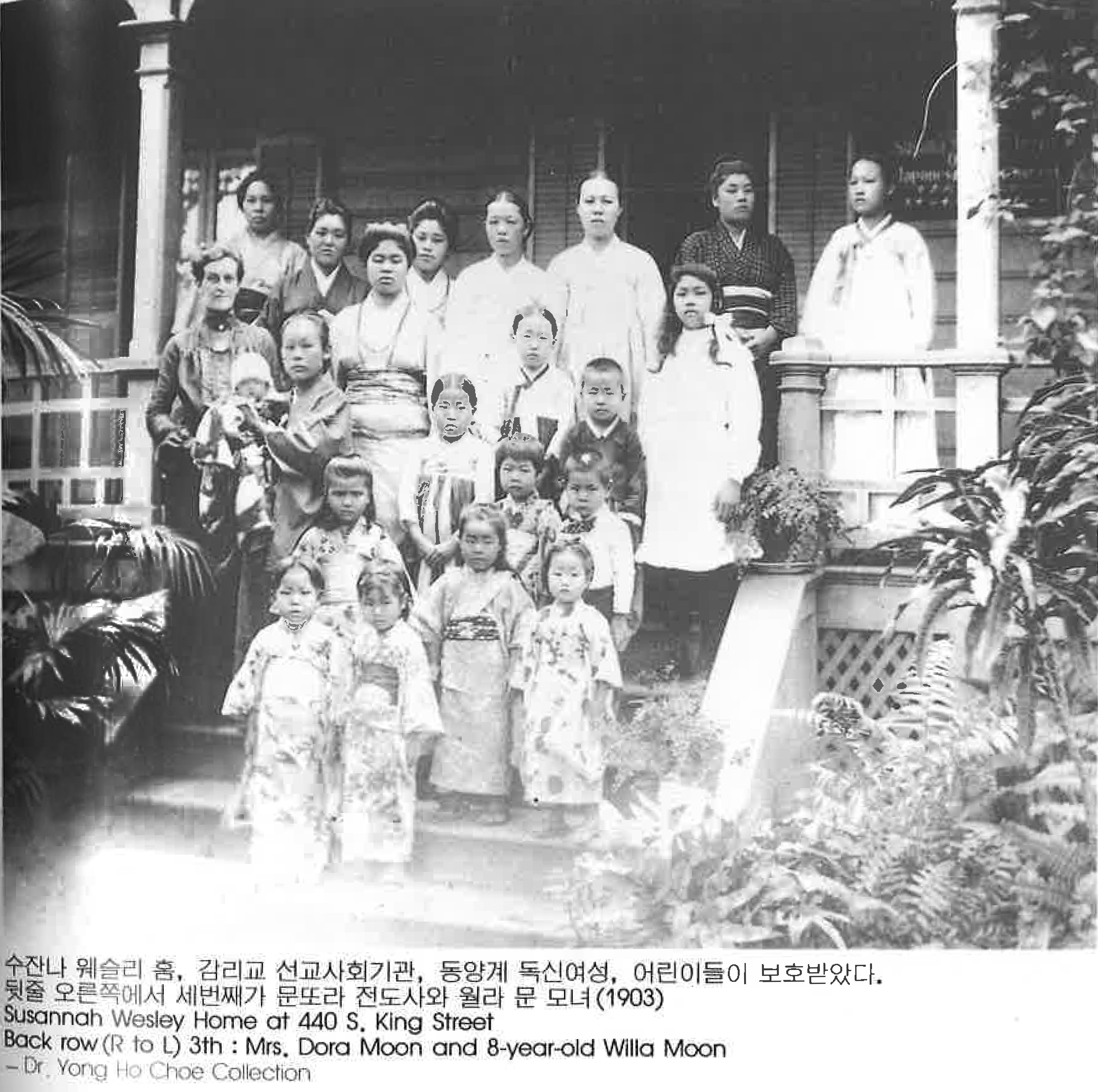 t수잔나 웨슬리 홈,감리교 선교사회기관,동양계 독신여성,어린이들이 보호받았다 뒷줄 오른쪽에서 세번째가 문또라 전도사와 월라 문 모녀(1903) Susannah Wesley Home at 440 S. King Street Back row(R to L) 3th : Mrs. Dora Moon and 8-year-old Willa Moon -Dr. Yohg Ho Choe Collection