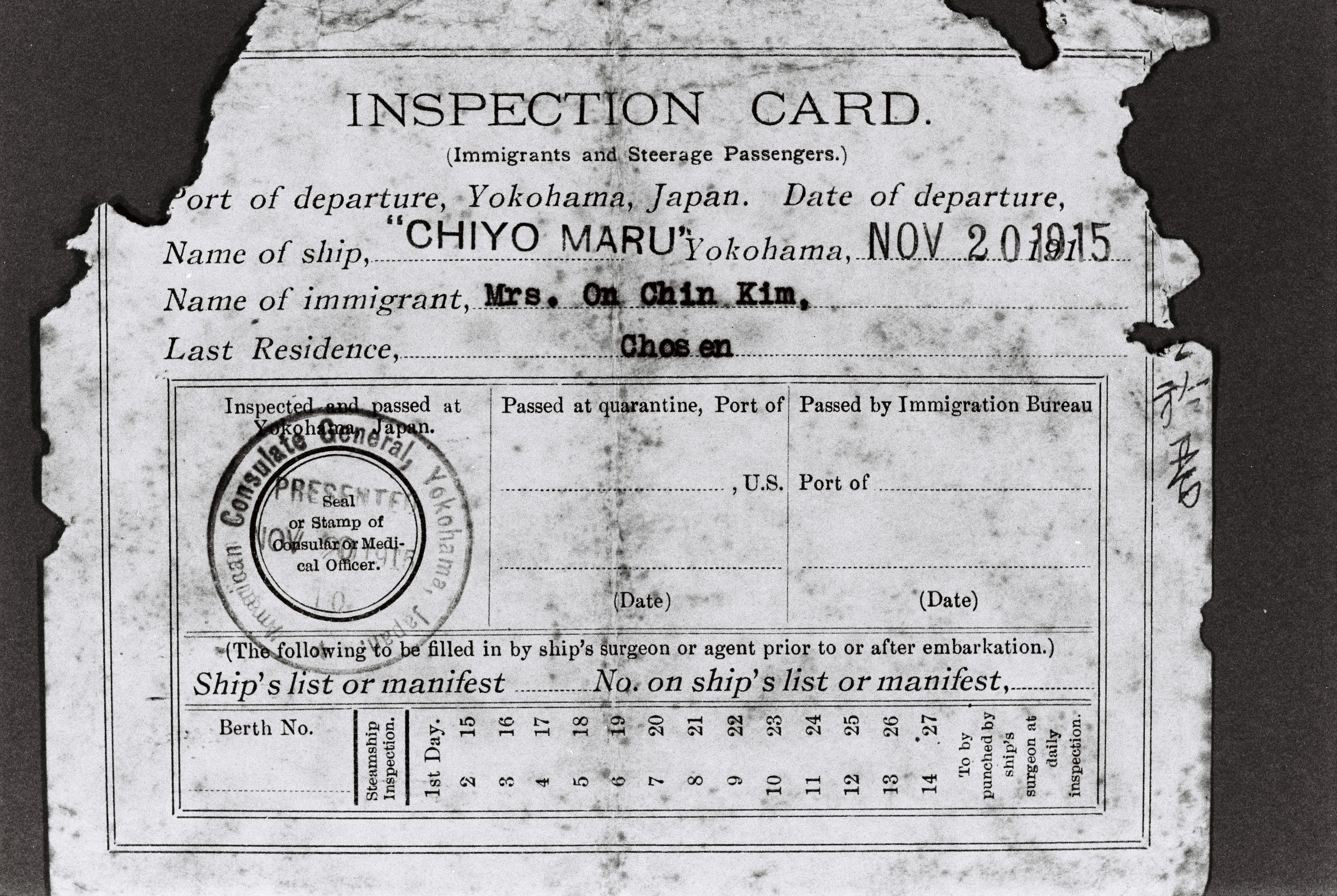 김온진 사진신부의 검역증 (1915) Inspection Card 一 Mrs. On Chin Kim Hong