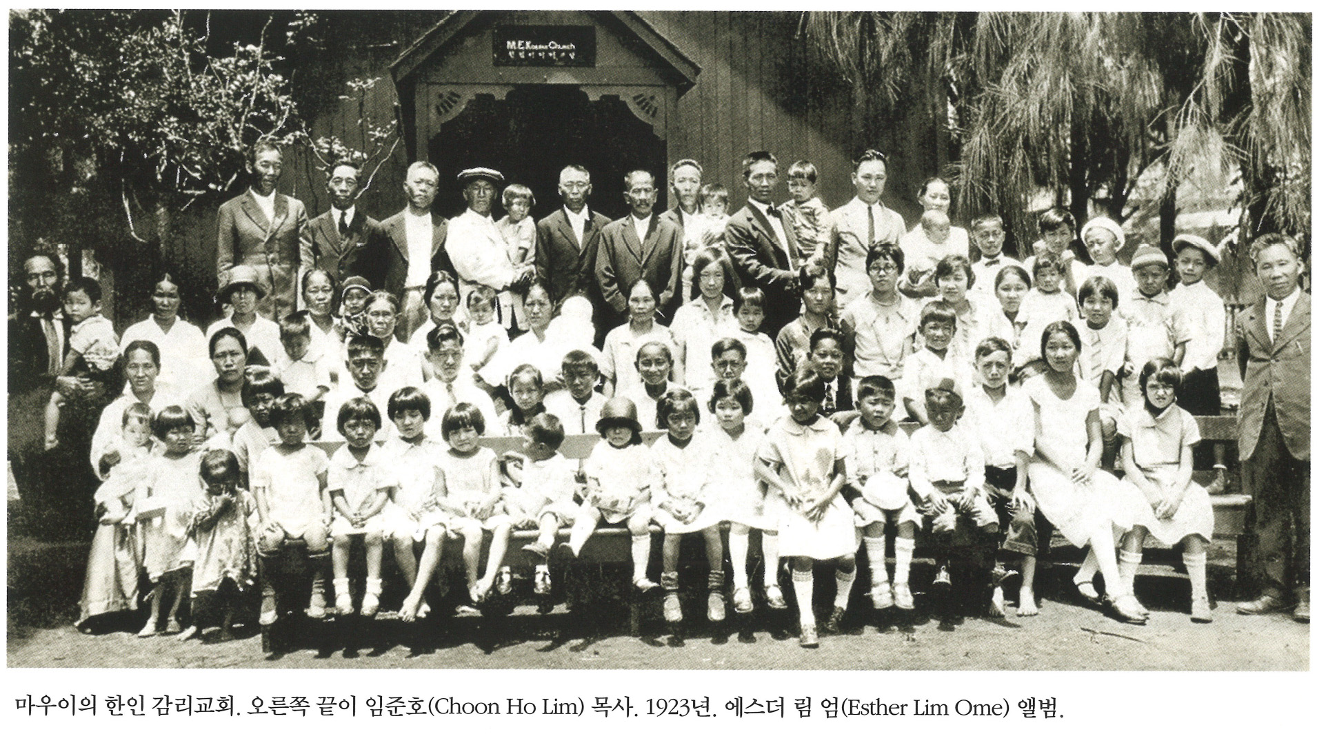 마우이의 한인 감리교회. 오른쪽 끝이 임준호(Choon Ho Lim) 목사. 에스더 림 엄(Esther Lim Ome) 앨범.