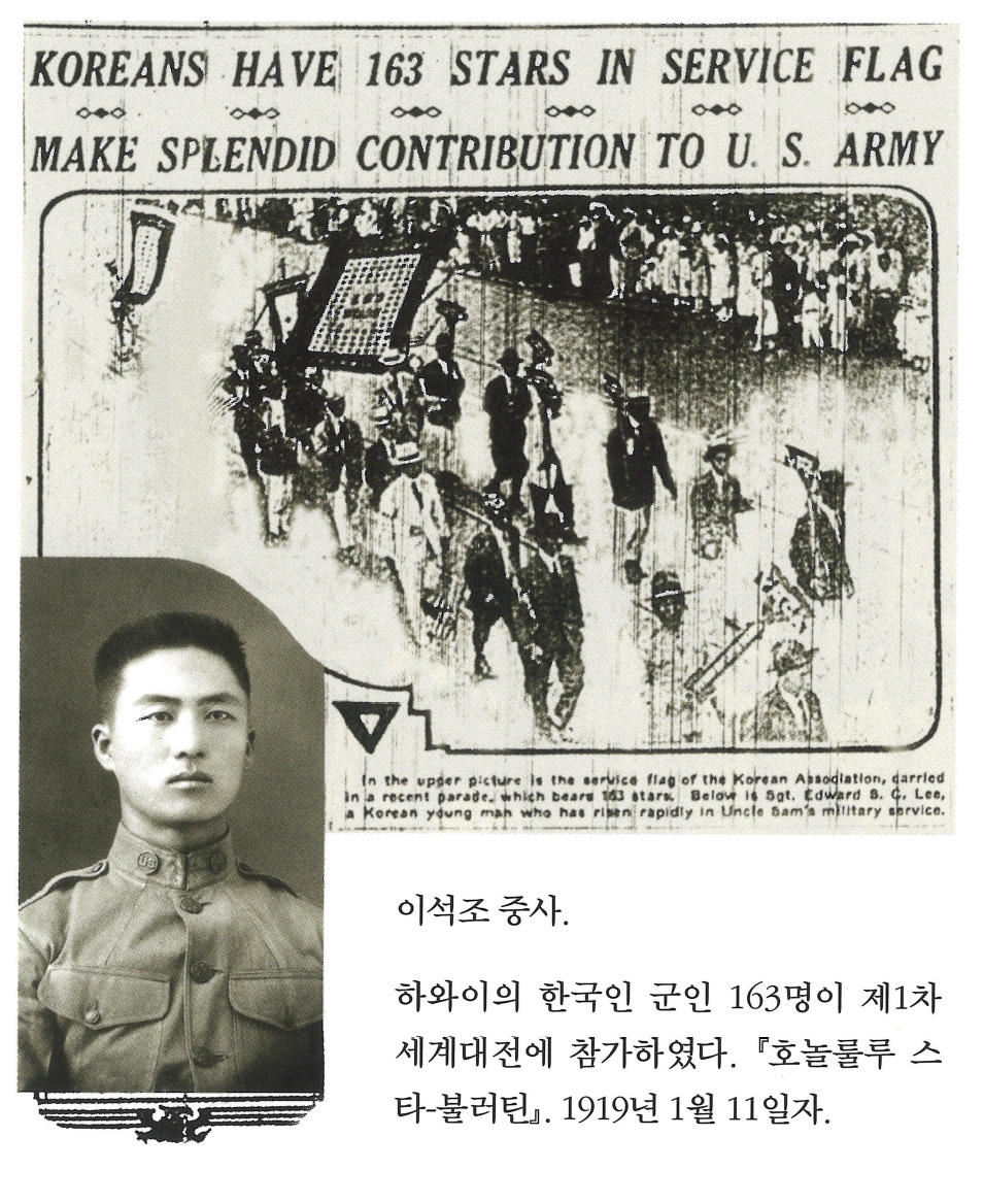 이석조 중사. 하와이의 한국인 군인 163명이 제 1차 세계대전에 참가하였다. 『호놀롤루 스타-불러틴』. 1919년 1월 11일자.