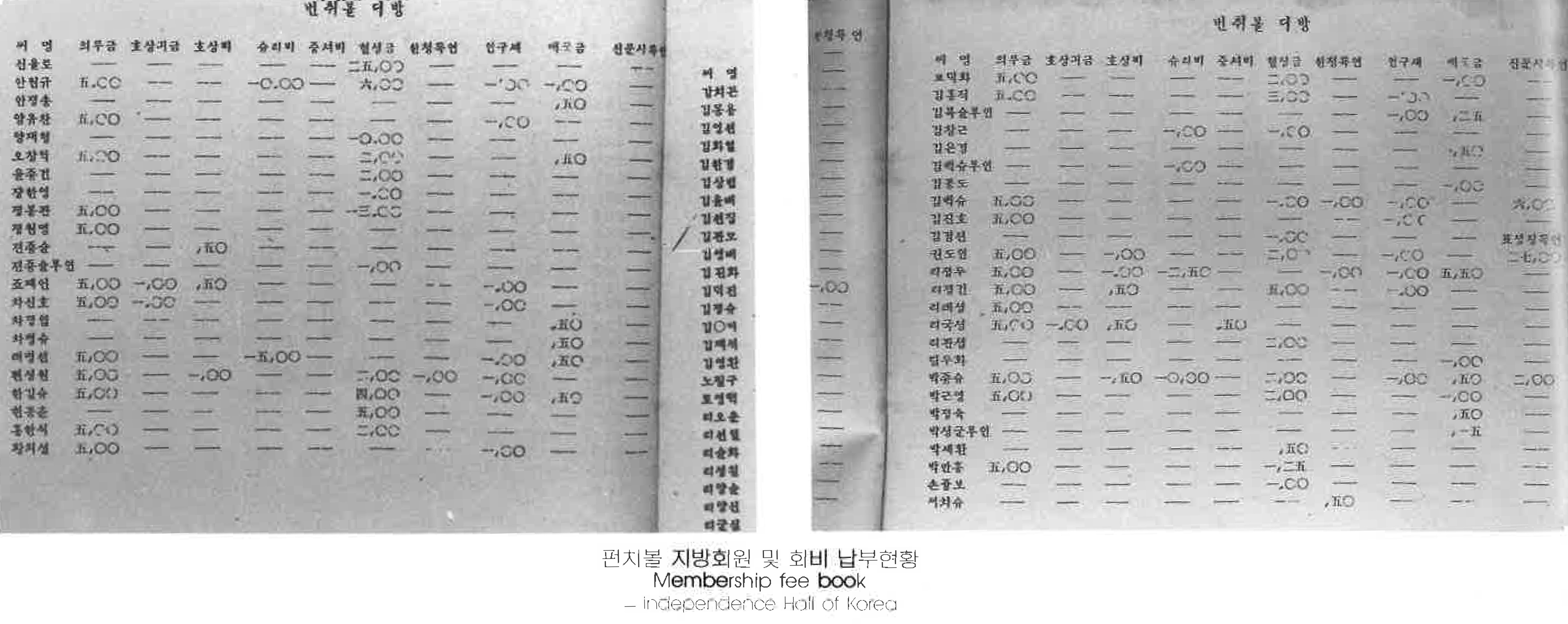 펀치볼 지방회원 및 회비 납부현황 Membership fee book