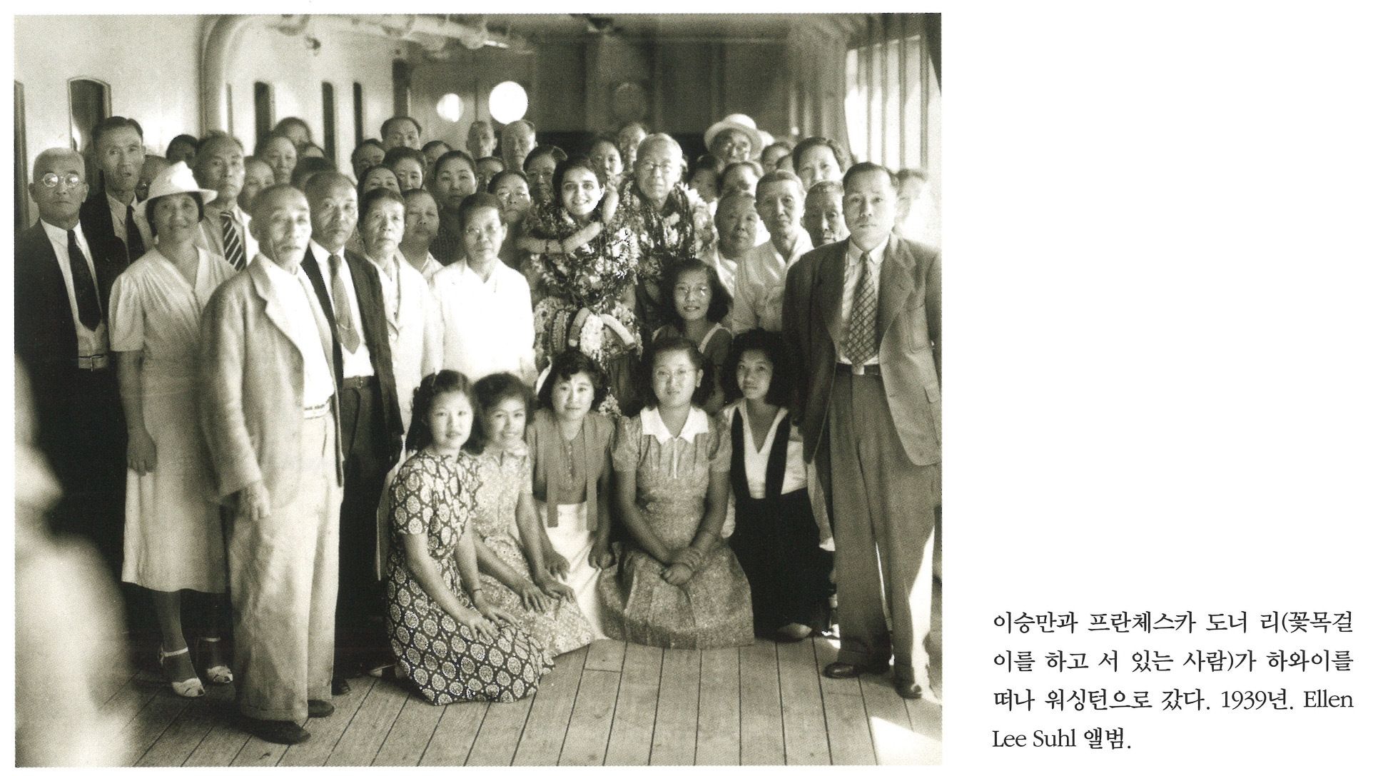 이승만과 프란체스카 도너 리(꽃목걸이를 하고 서 있는 사람)가 하와이를 떠나 워싱턴으로 갔다. Ellen Lee Suhl 앨범.