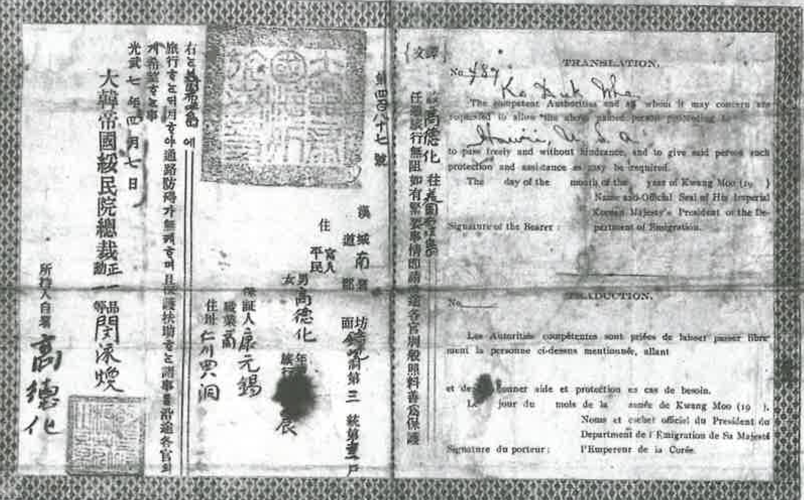 KlFRA4fp... | 고덕화씨 집조 (여권),대한제국 수민원 총재 정1품 민영흰. 발행,광무 7년 (1903) Imperial Korean Government Passport issued to Mr. Duk Wha Ko - Or. Soquel S. L&e Collection | 고덕화 | 그들의 발자취 | 고덕화 | 16 | - | img2 | 25-09-14 | 25-12-06 | ||||||||||||